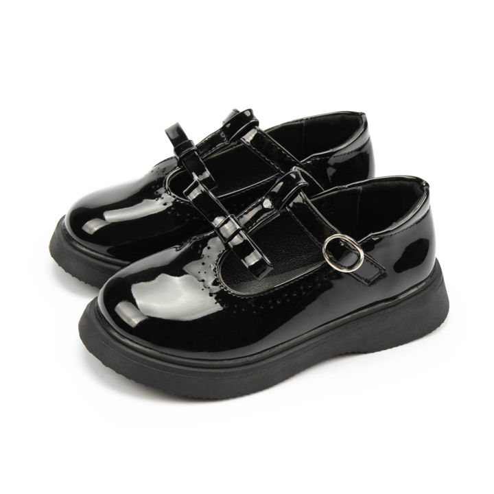 KIDSUN Fashion Children's Shoes Simple Bow Buckle Black Leather Shoes Classic Cute Versatile Princess Dress Shoes