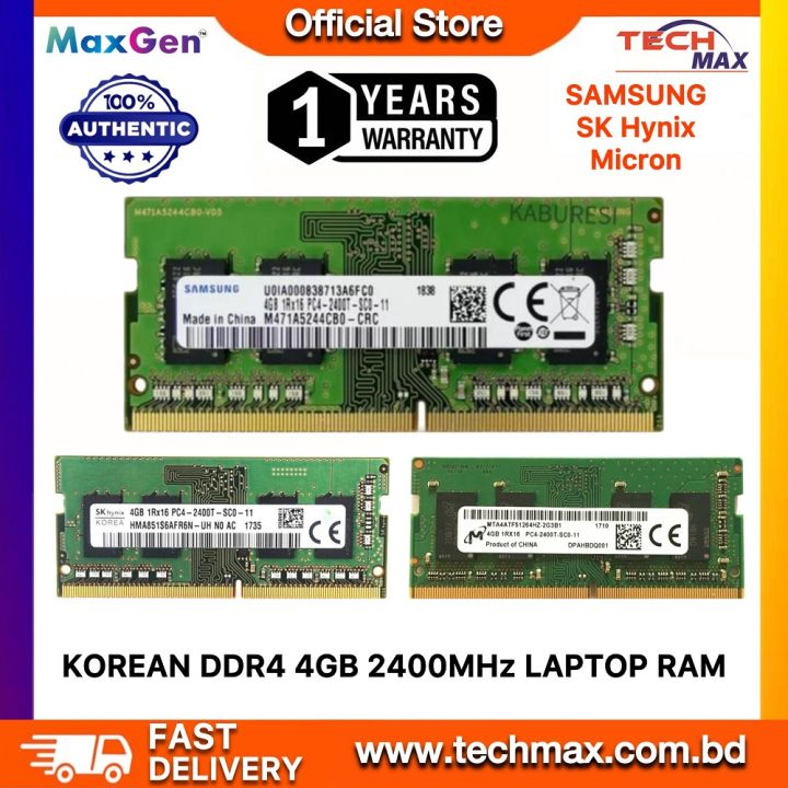 Samsung SK Hynix Micron DDR4 4GB 2133MHz 2400MHz PC4-19200 CL17 1.2V 260Pin SO-DIMM Laptop Ram (Korean)