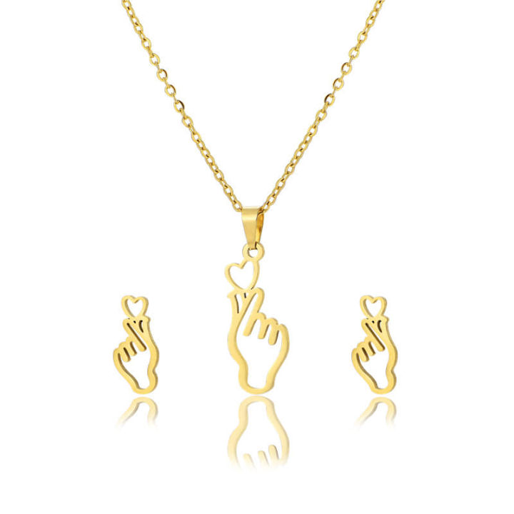 Korean Love Shaped Necklace Earrings Set For Women/Gift For Grils