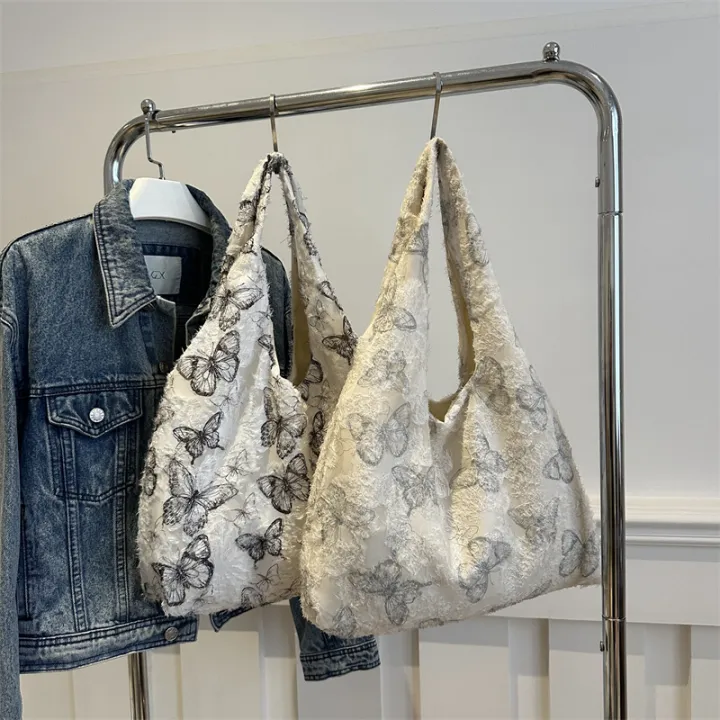 Lace Black Butterfly Tote Bag 2024 New Trendy Korean Version Literary Canvas Bag Large Capacity Student Class Bag Girl