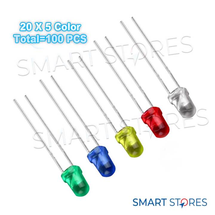 LED Beads High Performance Five Color LED Light Bulb 2 Pin Diode Lamps-(Red, blue, green, yellow, white Total 100pcs )