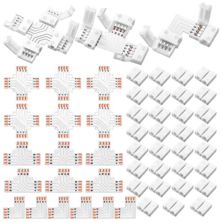 LED Strip Lights Connectors 4-Pin RGB Strip Lights Connectors T-Shape Solderless LED Connectors for 5050 RGB Strip Light