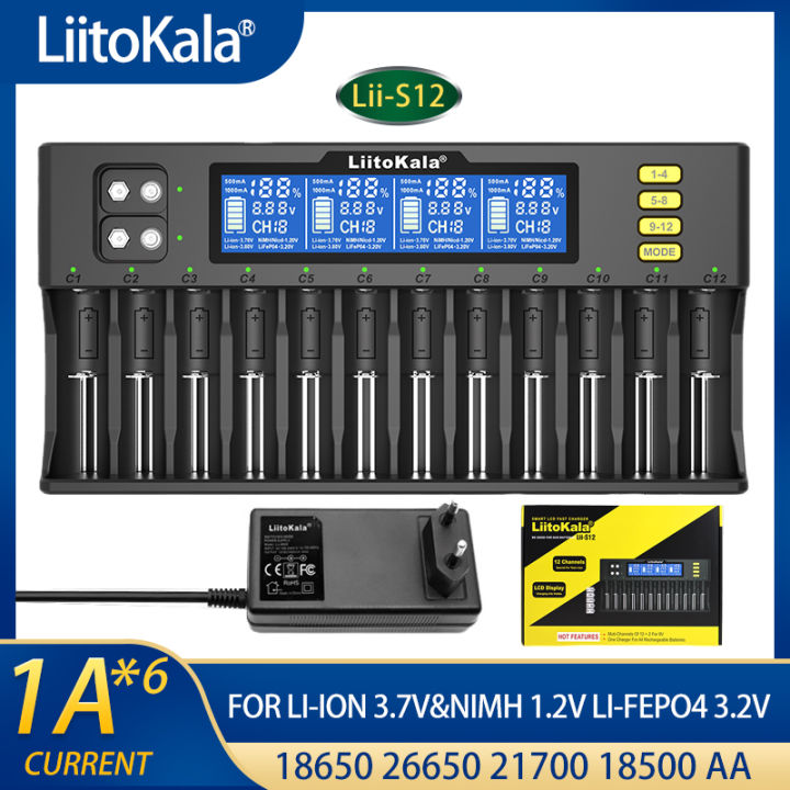 LiitoKala Lii-S12 S2 21700 9V Battery Charger LCD Display 12 Trough For 1.2V 3.8V 3.2V 3.7V IMR NiMH/Cd 18650 26650 26700 AA AAA