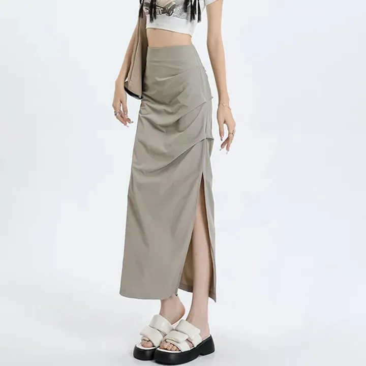 Lucyever Y2K Cargo Skirts for Women Korean Style High Waist Slim Fit Long Skirt Woman Bodycon Side Split Midi Skirts Female