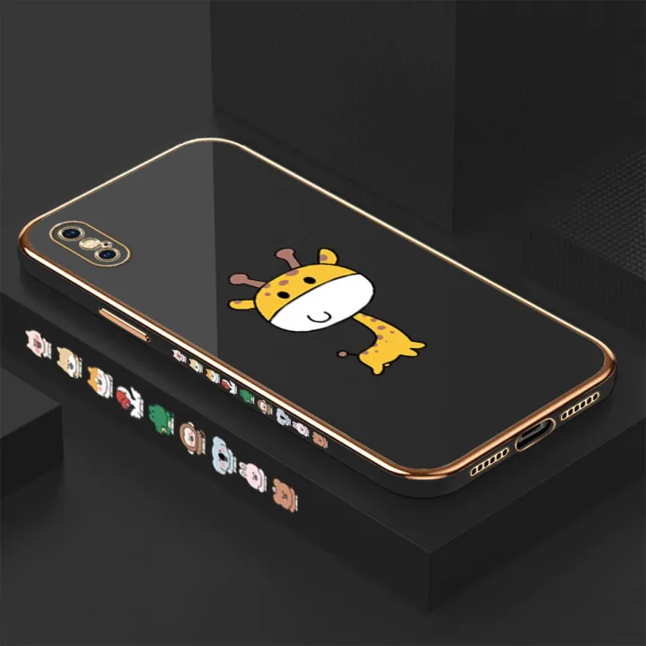 Luxury 6D Plating Case for iPhone X Color Cute Giraffe Side Pattern Back Cover Soft Silicone Square Frame Shiny Bling Phone Cases + Free Lanyard