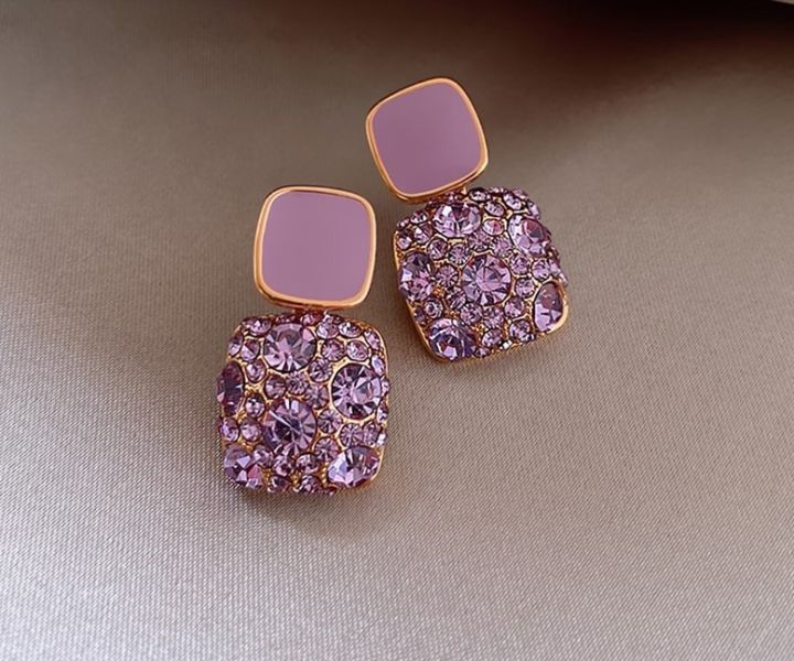 Luxury Female Crystal Zircon Stone Earrings Purple-Pink-Black-White Fashion Silver Color Jewelry Vintage Double Stud Earrings For Women