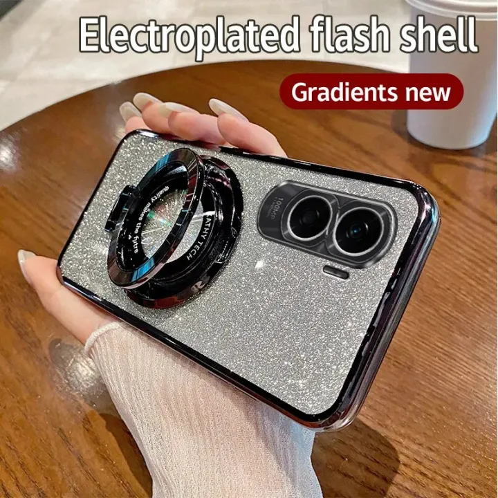 Luxury Plating Mag safe Flash Holder Stand Phone Case For Honor 90 Lite Resistant to dirt Bumper Protector Anti-fall Cover
