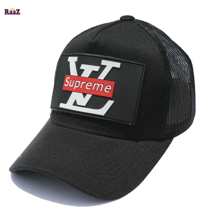 LV x Supreme Rubber Logo Mesh Air Curved Cap For Men
