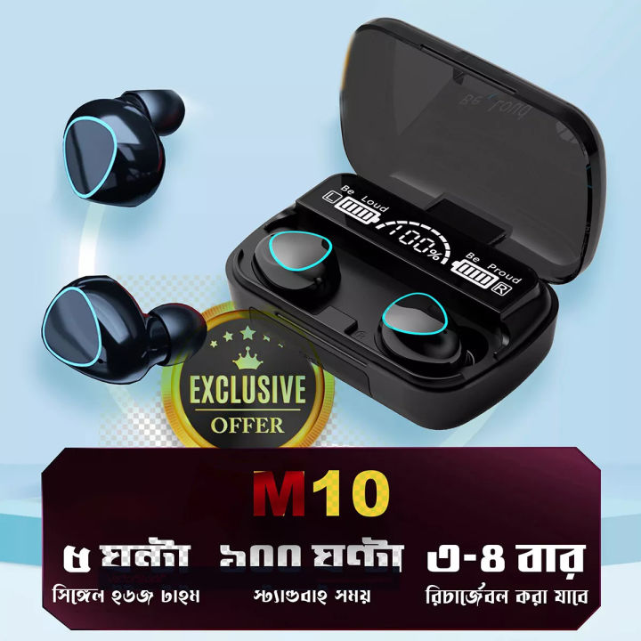 M10 TWS Wireless Bluetooth 5.1 Touch Control Digital Display Earbuds Earphones 2000mAh - Best Quality