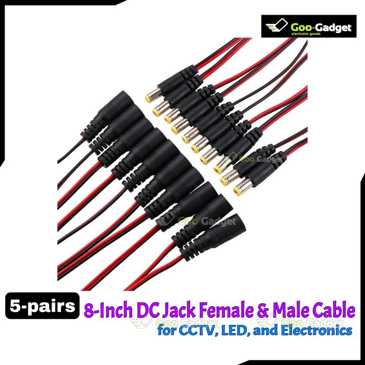 Male Female DC Power Jack and Socket with Cable (2.1mm Plug to 2-Pin Screw Terminal) - 5 Pair Barrel Adapters , Male and Female DC Adapter, 2.1mm Plug Connector, Barrel Power Adapters, Power Supply Cable,