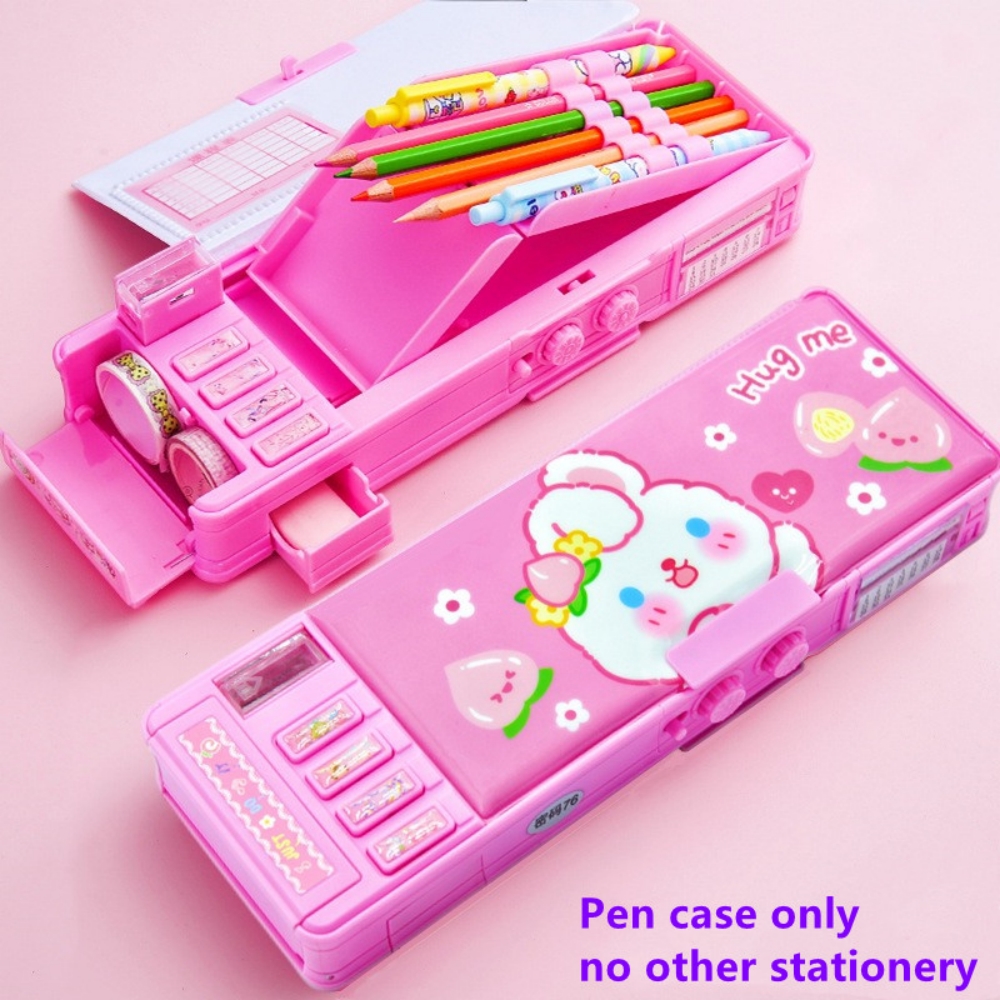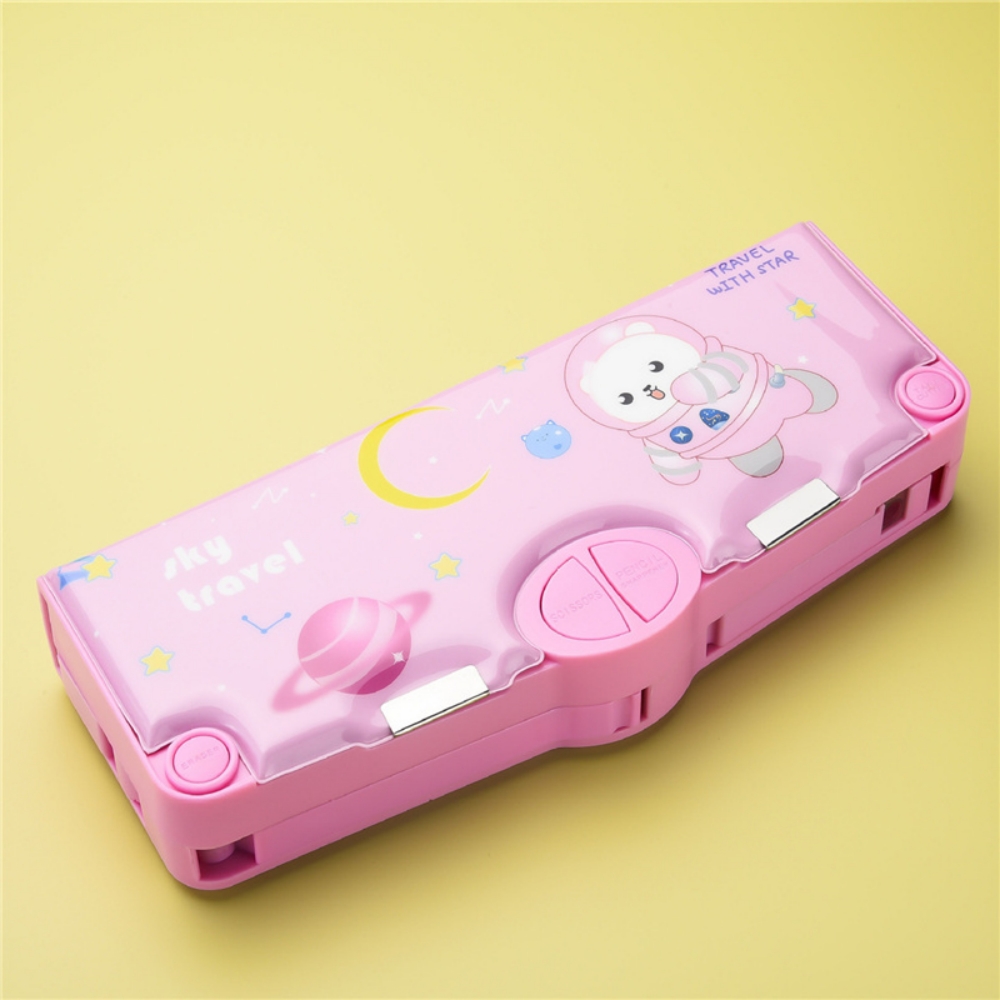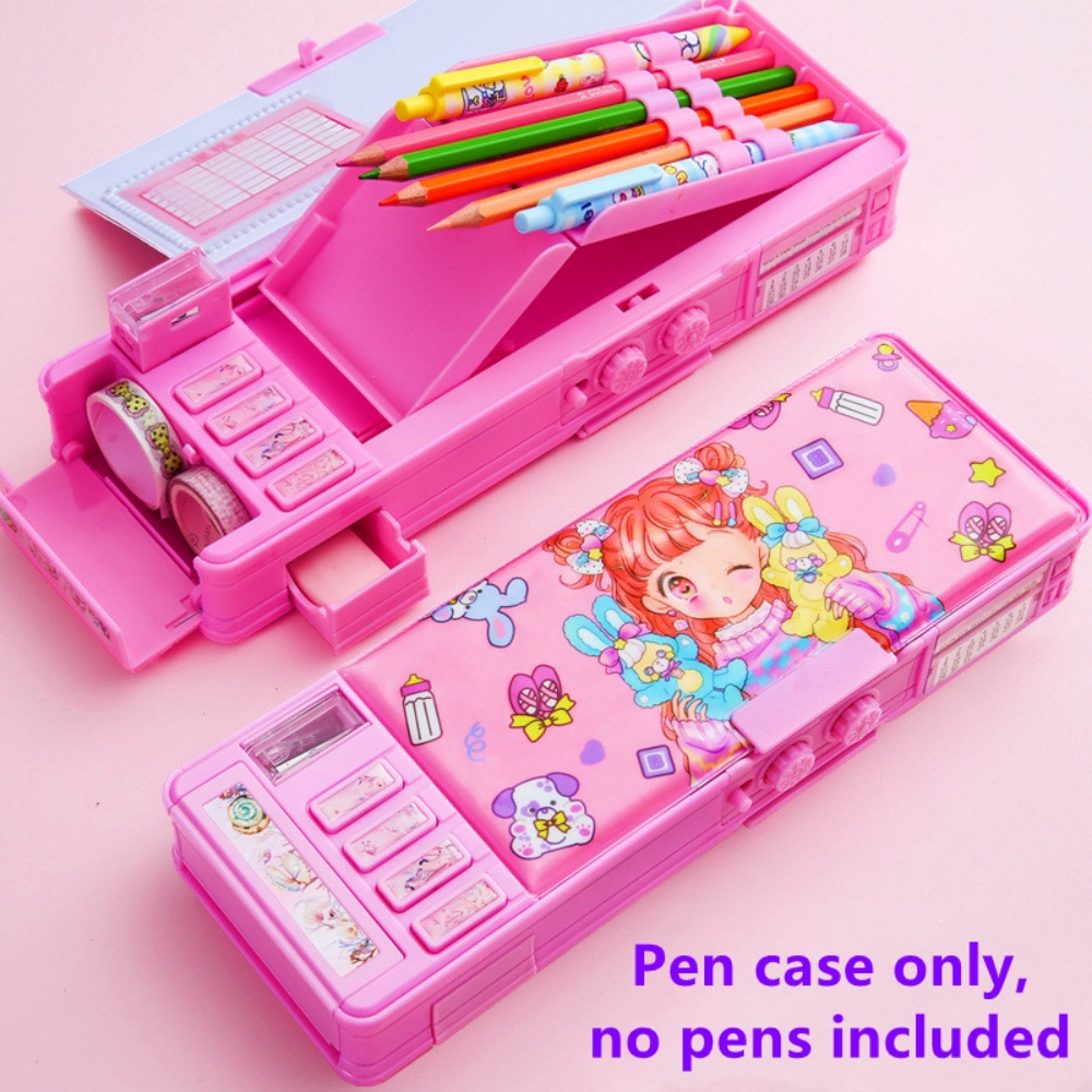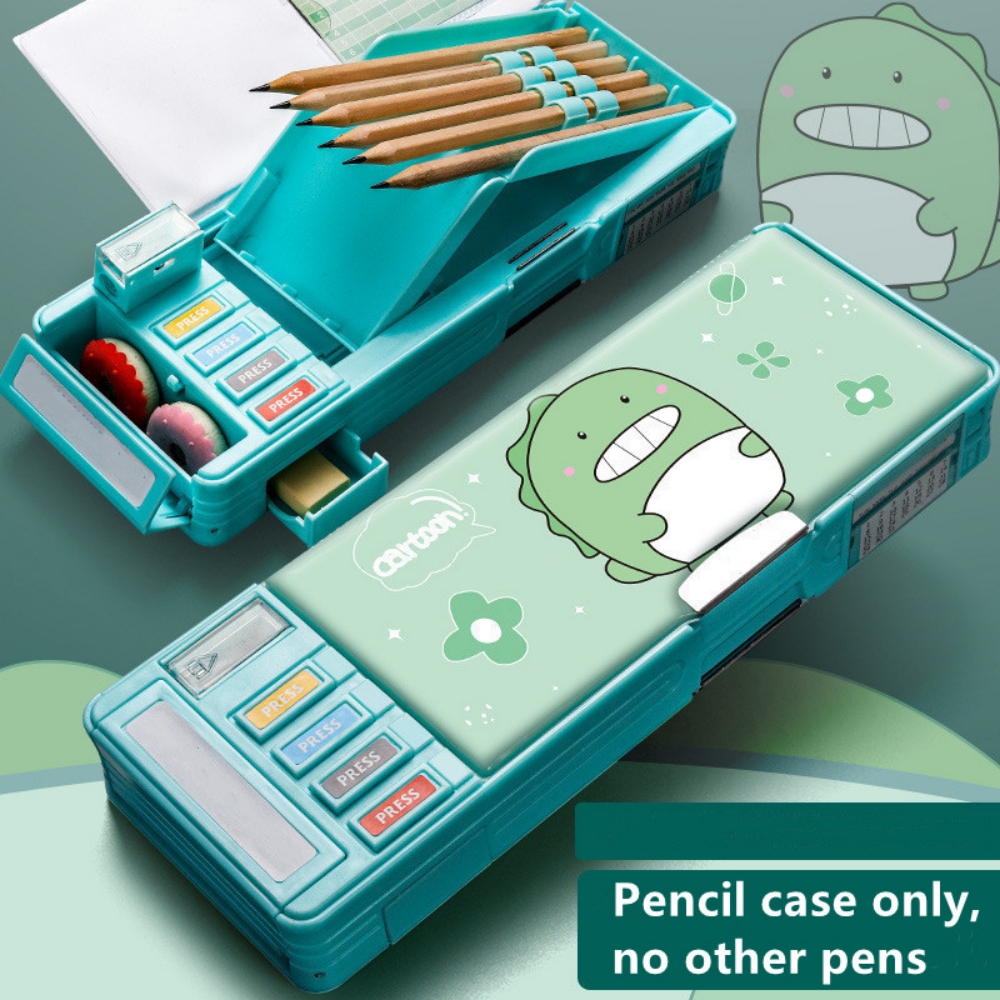 Mechanical Deformable cute pencil case with pen insert multifunctional key switch cartoon plastic school stationery storage box