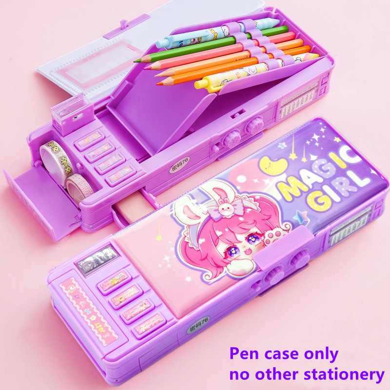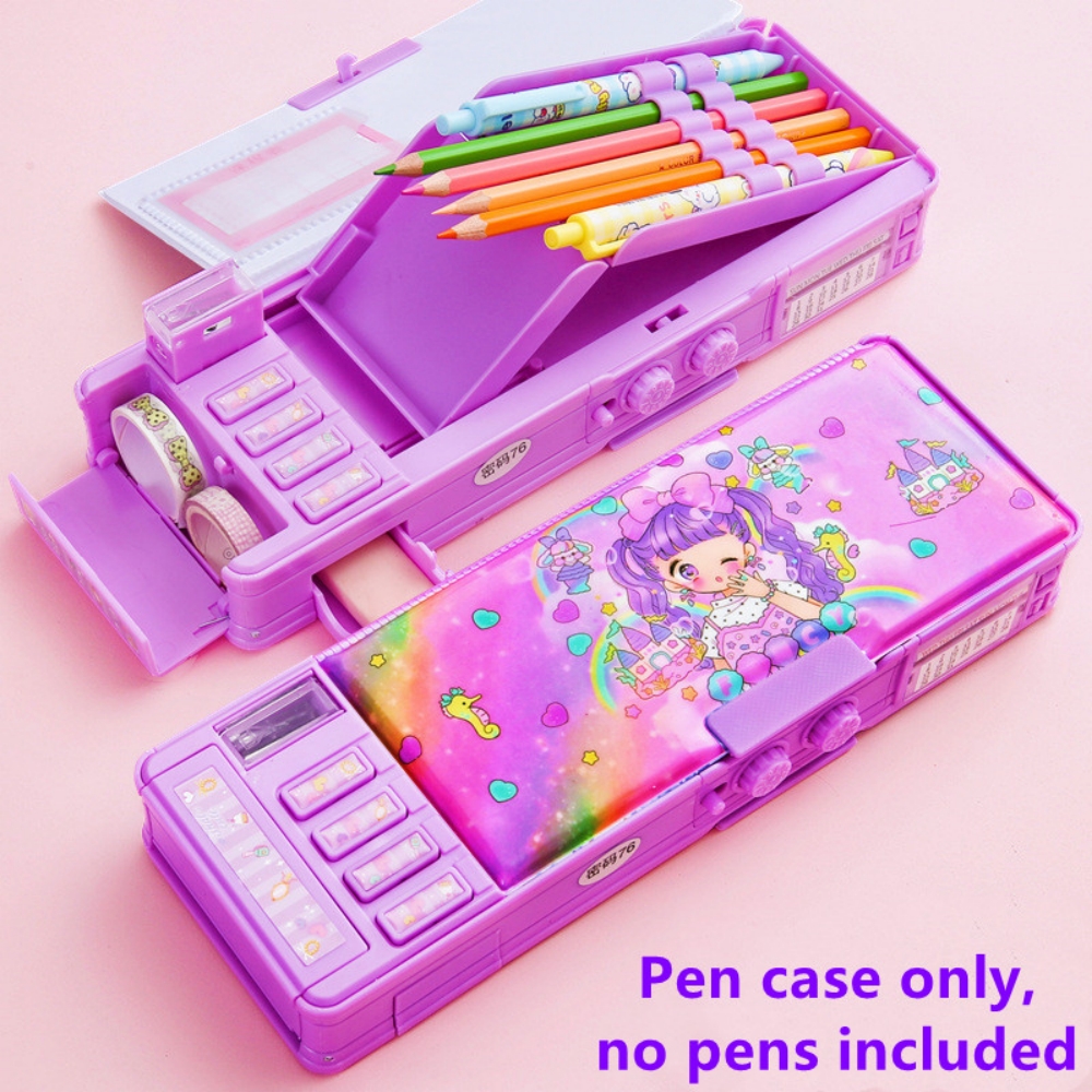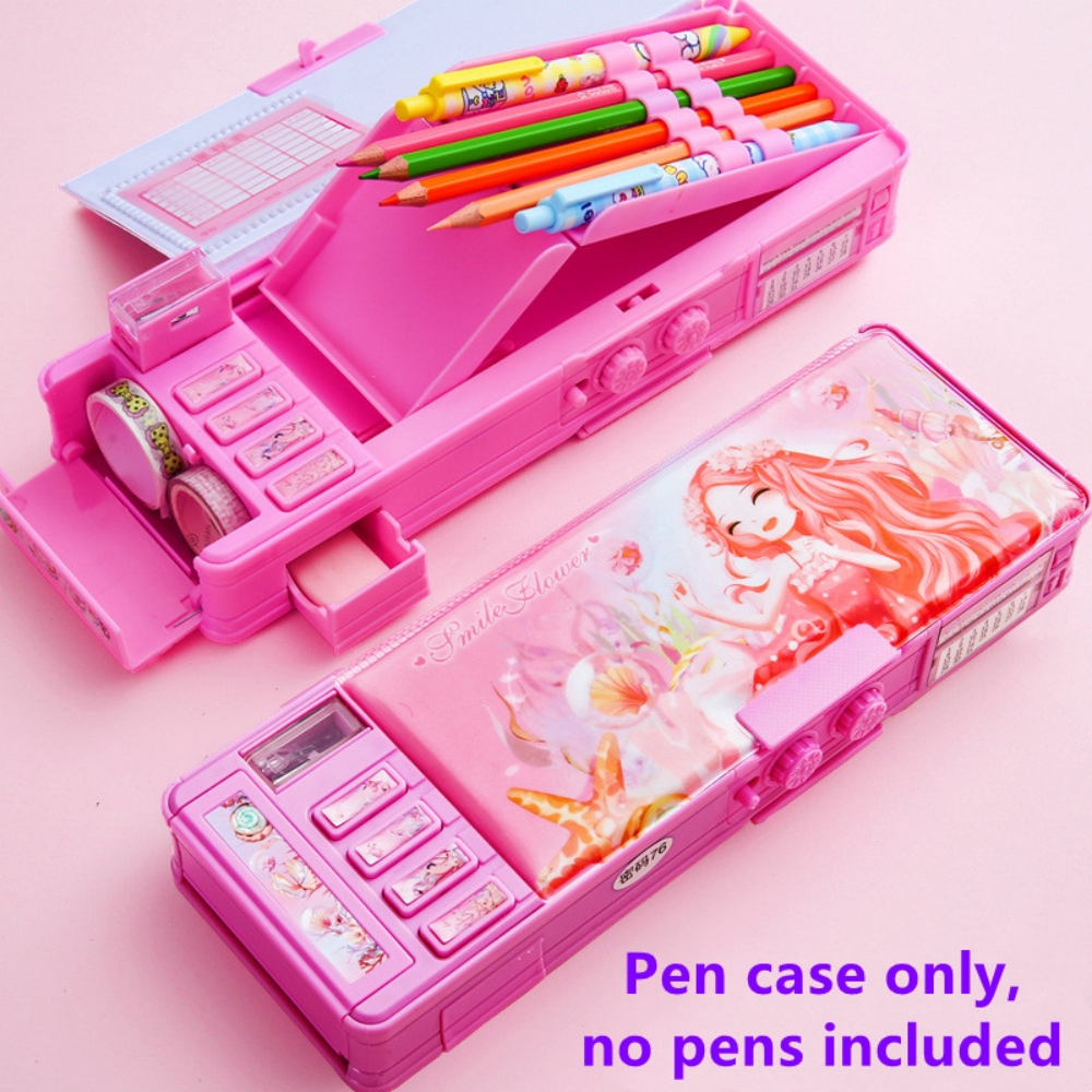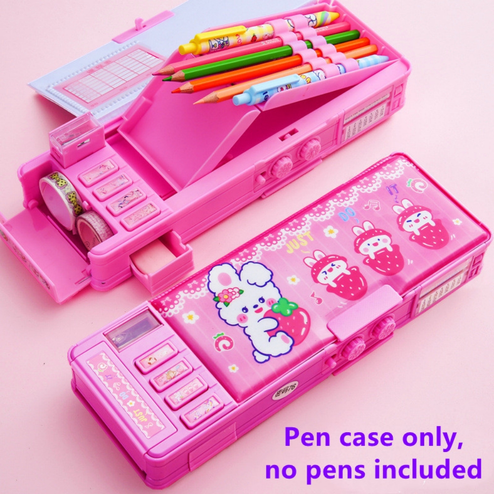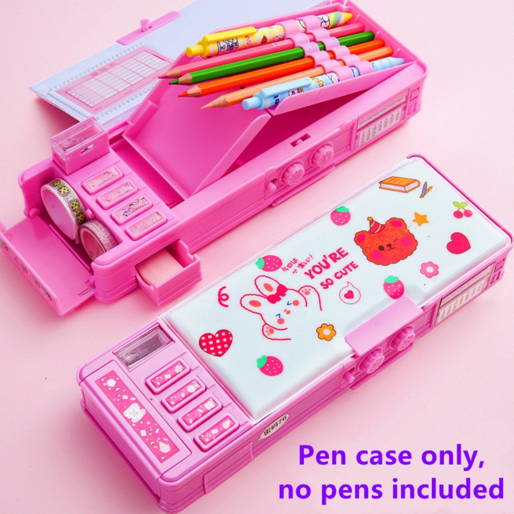 Mechanical Deformable cute pencil case with pen insert multifunctional key switch cartoon plastic school stationery storage box