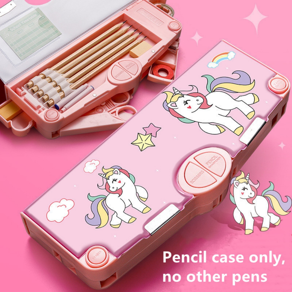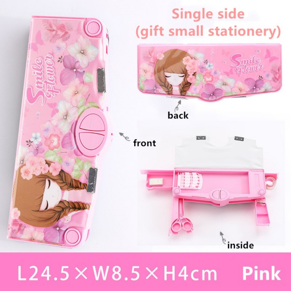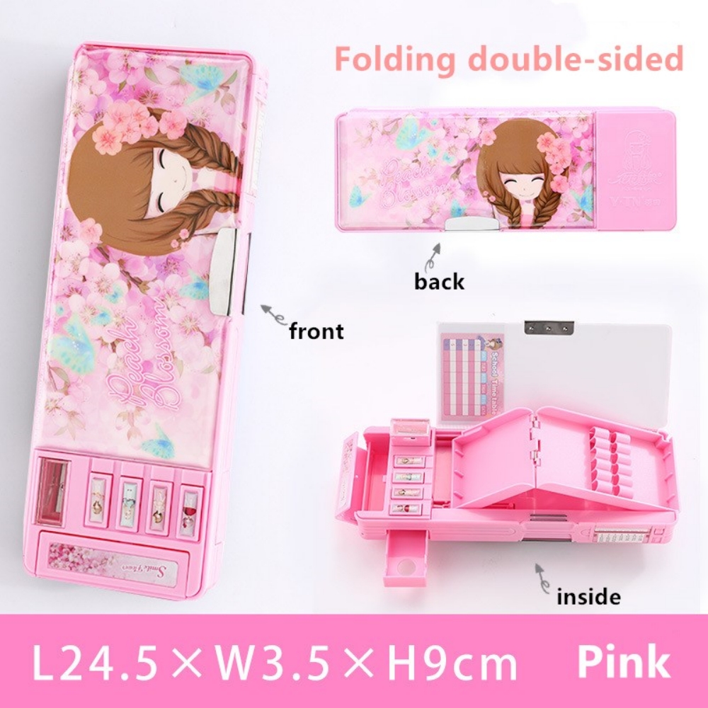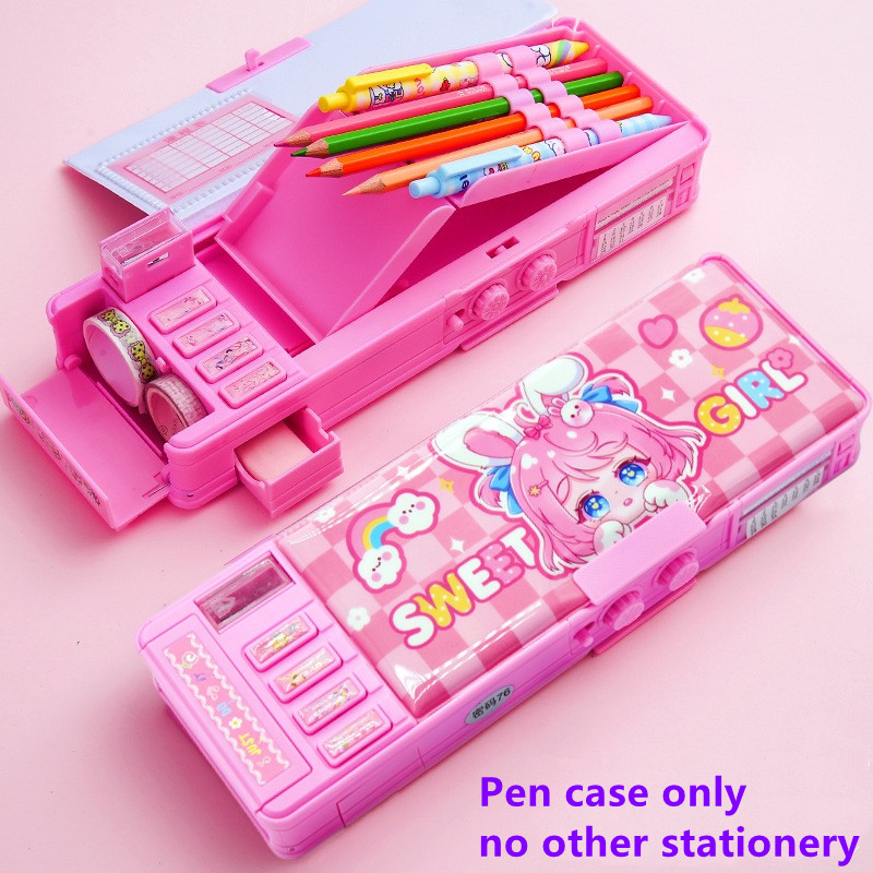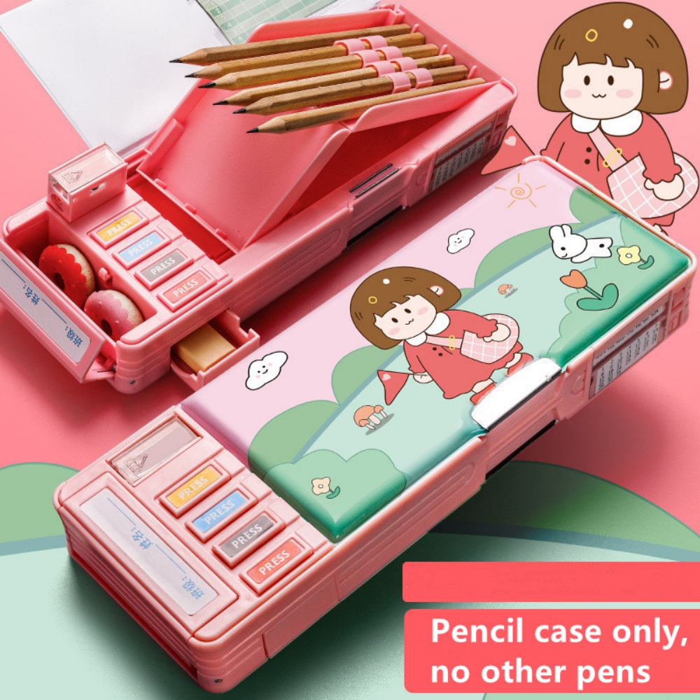 Mechanical Deformable cute pencil case with pen insert multifunctional key switch cartoon plastic school stationery storage box