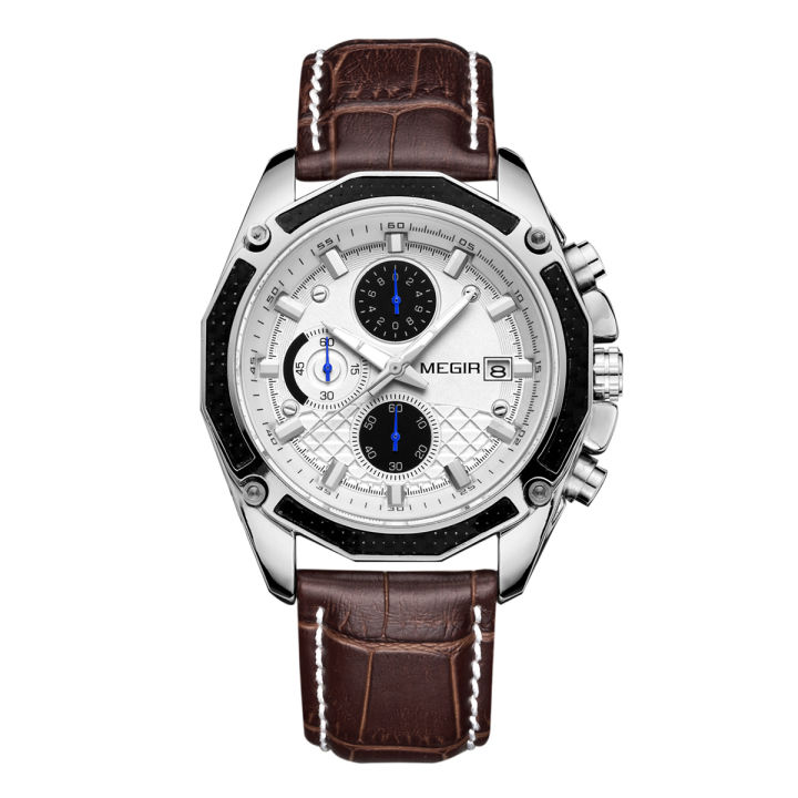 MEGIR WATCH 2015 Gents- White & Brown for Men