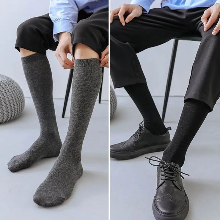 Men Long Socks Knee High Cotton Solid Business Soft Elastic Party Dress Formal Gentleman Stocking Four Seasons Sokken Brand