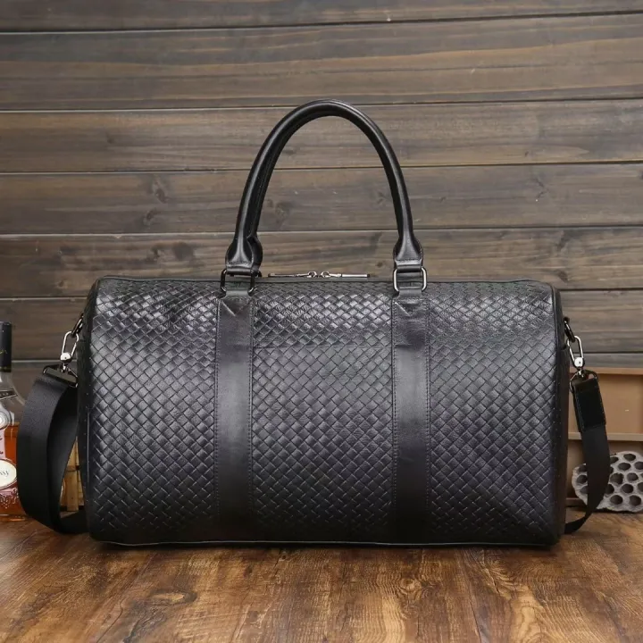 Men's leather travel bag, black gym bag, drop-hair waterproof handbag, top cowhide crossbody bag, one shoulder