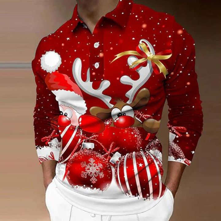 Men's polo shirt golf shirt Santa Moose snowflake carousel black light green red blue dark green 3D print casual breathable