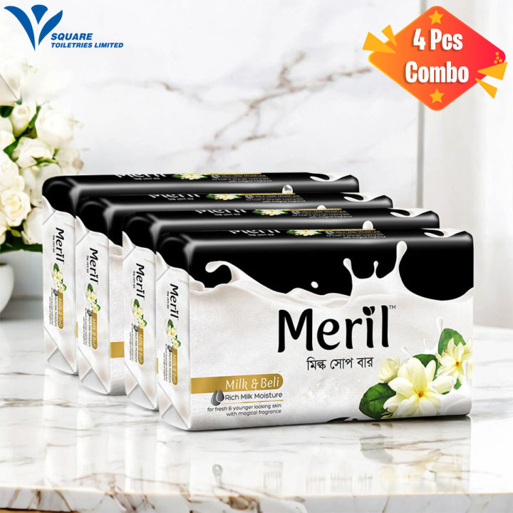 Meril%20Milk%20&%20Beli%20Soap%20Bar%20Quad%20Pack%20(100gm%20x%204)%20-%20Image%201
