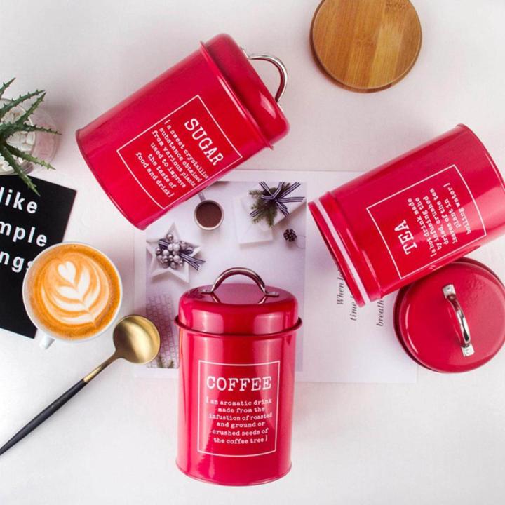 Metal Kitchen Canister Set Coffee Tea Sugar Tins Containers Food Storage Jars Bottles 1200ml Capacity