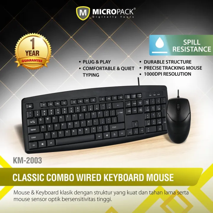MicroPack KM-2003 Wired Mouse and Keyboard Combo - Black
