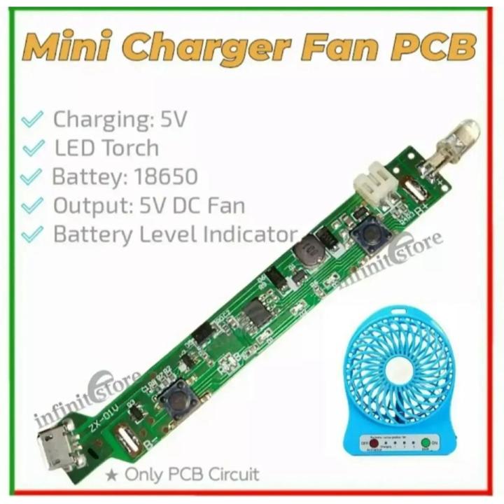 Mini Rechargeable Fan Circuit 4.2V DC with LED Torch