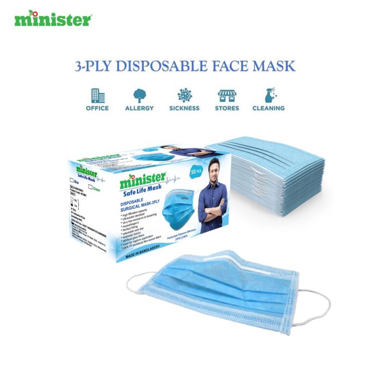 Minister Safe Life Surgical Mask - 50 Pcs (Medical-Grade Protection)