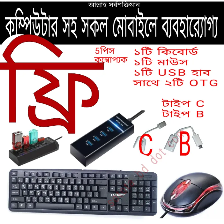 Mouse Keybord Usb 4.1 Pot Hab And 2 Pice Otg Kebol Tipe C Tipe B - Keyboard And Mouse