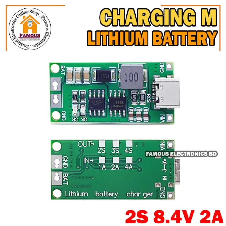 Multi-Cell 2S 2A Type-C To 8.4V Step-Up Boost Lipo- Polymer Li-Ion Charger 7.4V 18650 Lithium Battery