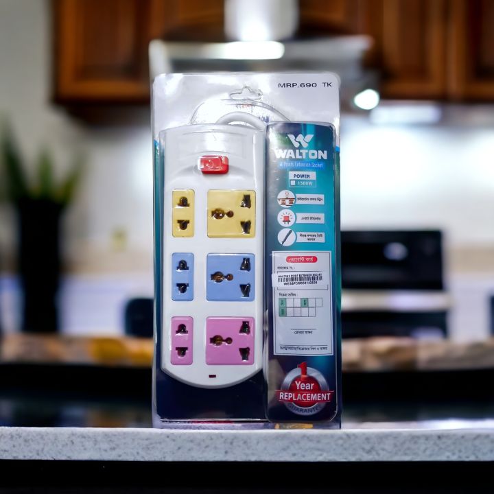 Multi plug Heavy Duty Extension 6 Socket With 3 meter Cable