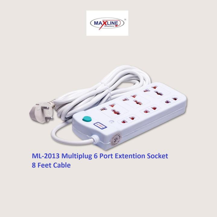 Multi Plug Maxline ML-2013 Multiplug 6 Port Extention Socket 8 Feet Cable
