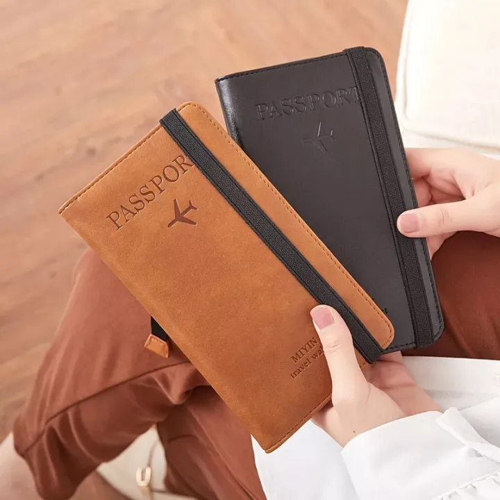 Multifunctional Leather Travel Bag Wallet Ticket Holder Organizer Case with Zipper Fashionable Passport Bag