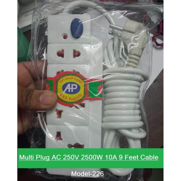 Multiplug Socket Multi Plug AC 250V 2500W 10A 9 Feet Cable Brass Contact 4 Point Socket LED Indicator Control With Single Switch Multi Usage Extension Socket
