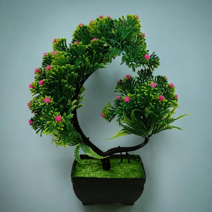 Natural Looking Artificial Plastic Bonsai Tree with Small Flowers in Tub, 1 Piece for Gift and Home Decoration