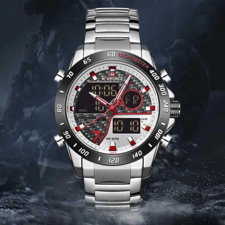 NAVIFORCE NF9171 Silver Stainless Steel Dual Wrist Watch For Men - Black & Silver