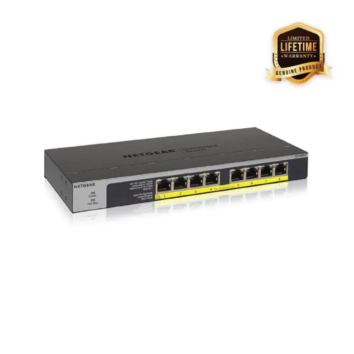 Netgear GS108LP 8-Port Gigabit Ethernet PoE+ Unmanaged Switch with FlexPoE (60W)