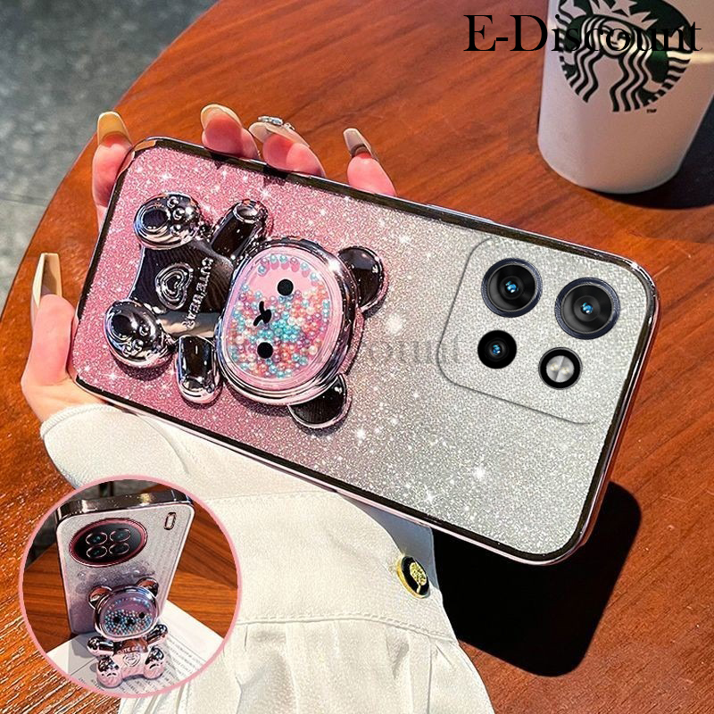 New Phone case Motorola Edge 50 Fusion 50 Pro 40 NEO Back cover with Gradient 3D Bear Folding Stand Bracket Luxury Slim 6D Plating Glitter Girls for Moto Edge40 NEO Edge50 Pro Edge50Fusion case