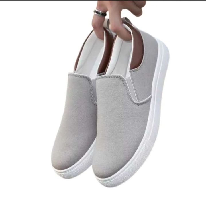New Trendy Black Grey Red and Khaki Color Korean Canvas Sneakers Shoes for Men Slip On Casual Shoes