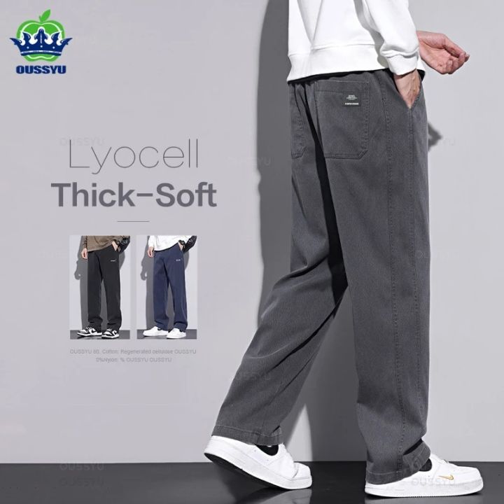 New Upgraded Soft Cosy Lyocell Fabric Men's Pants Baggy Straight Elastic Waist Thick Casual Wide Trousers Male Oversized M-5XL