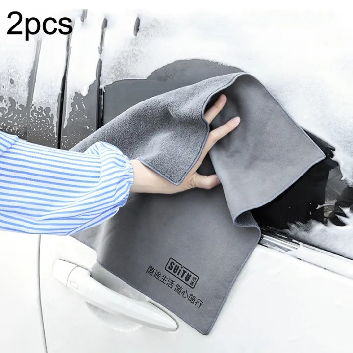 (New)SUITU ST-9000 2pcs Double Suede Car Cleaning Towel Dry Washing Cloth, Size: 30x40cm