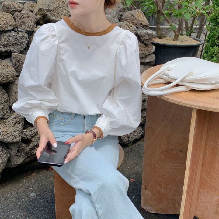 Niche Elegant Long Sleeve Blouse Women 2023 Spring New Korean Style Loose-Fitting Blouse Design Sense Bishop Sleeves Top