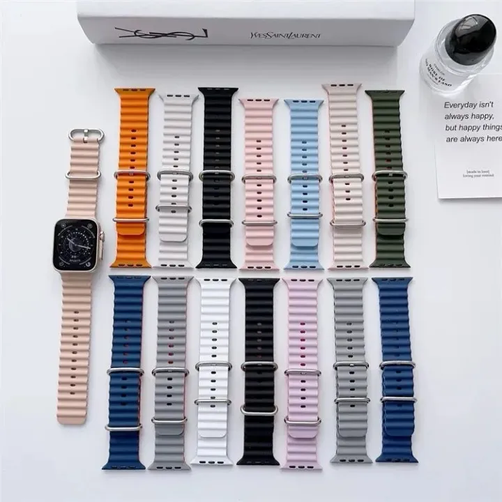 Ocean Band Compatible for Apple Watch 42mm 44mm 45mm 49mm, Adjustable Silicone Waterproof Sport Strap for Men and Women