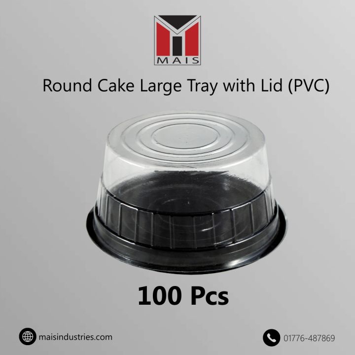 MAIS Reuseble Food Grade Plastic Round Cake Tray With Lid Large PVC - 100 pcs