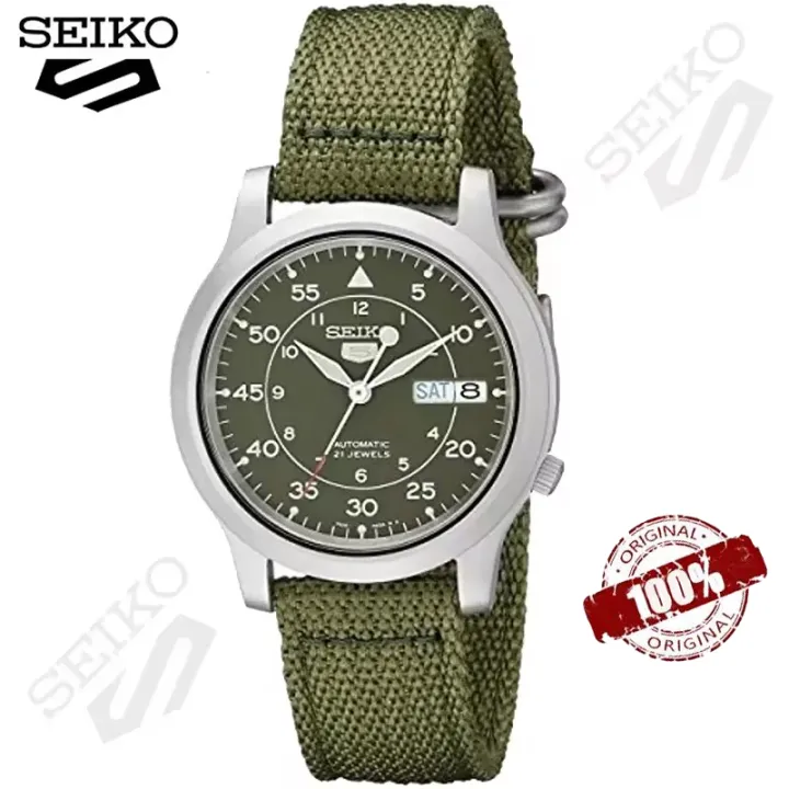 Original SEIKO SNK805 Automatic Stainless Steel Watch with Green Canvas Quartz Watch Fashion Casual Watch 5