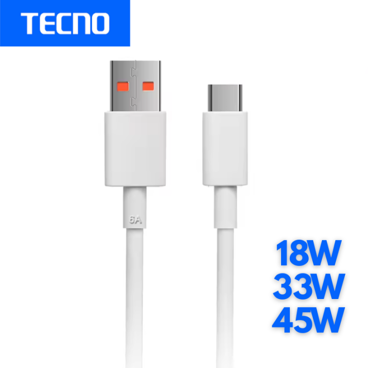 Original Tecno Type C Cable - 18W 33W 45W Fast Charger USB C Data Cord Line For Tecno Spark 10 20 30 Pro 5G Camon 20 30 40 Pro