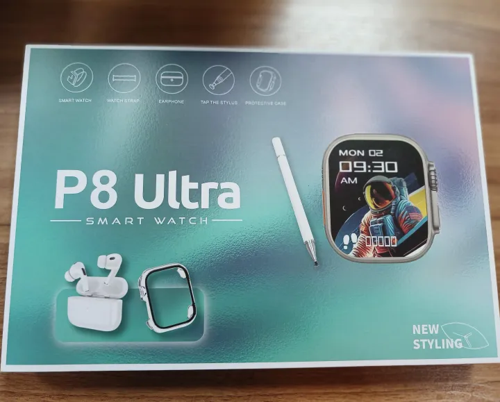 P8 Ultra Slim Touchscreen Smart Watch with 1.4-inch Square Display Wearable Fitness airpod pro - pencil ✏️-6 strps with Heart Rate