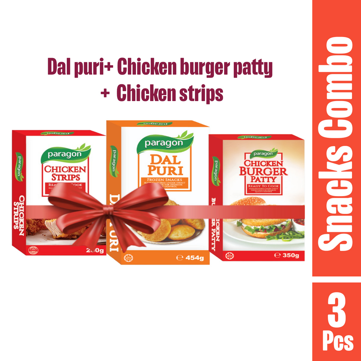 Paragon Dal puri (454 gm) + Chicken burger patty (350gm) + Chicken strips (200gm)- Bundle of 3