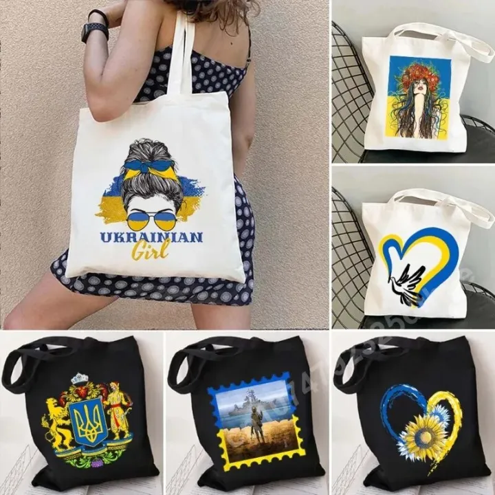 Peace Sunflower Coat Arms Shoulder Bag Ukraine Flag Ukrainian Tryzub Patriotic Gift Shopper Harajuku Tote Shopping Bags Handbag