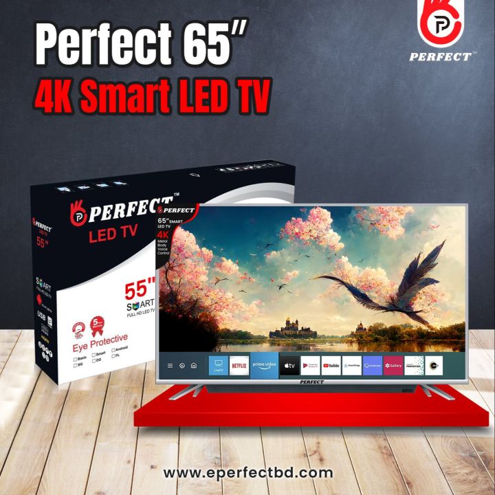 Perfect 65” 4K Smart Android HD LED TV, Metal Body, Voice Control, 2GB RAM 16GB ROM