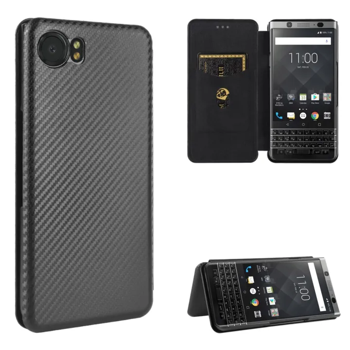 Phone Case Carbon Fiber Texture Horizontal Flip TPU + PC + PU Leather Case with Card Slot For BlackBerry Keyone