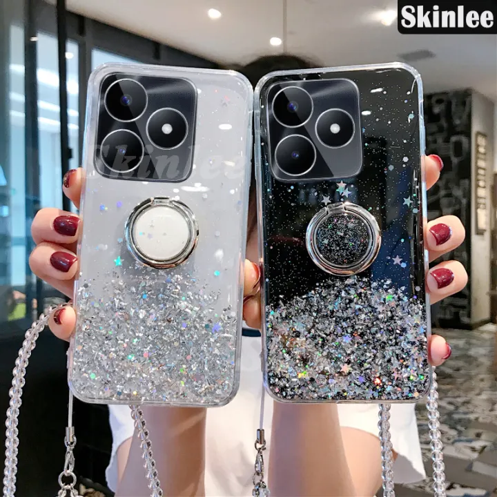 Phone case For Realme Note 60 Back cover Glitter Starry Sky Bling Ring Lanyard Shiny Transparent Holder Stand Girls Soft Cover For Realme Note 60 Cover cases